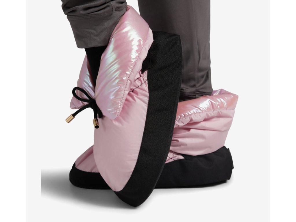 Limitovaná edice! Mini Glam Warmup Bootie v metalicky světle růžové – stylové a pohodlné botičky pro malé gymnastky a tanečnice na zahřátí i odpočinek.