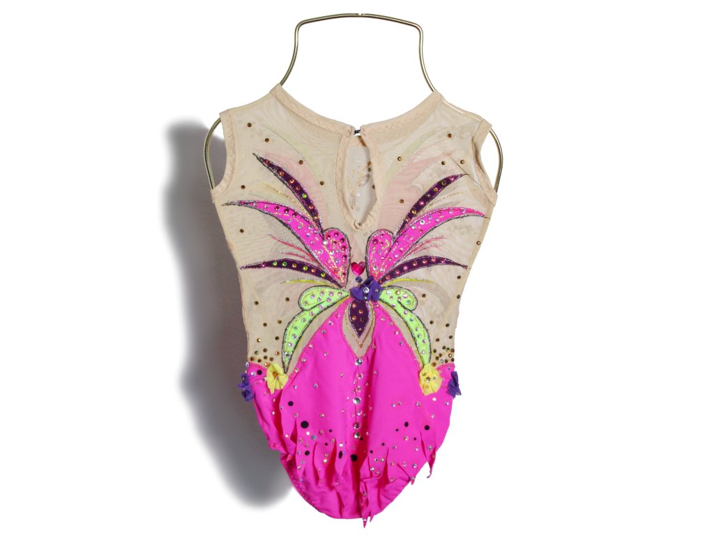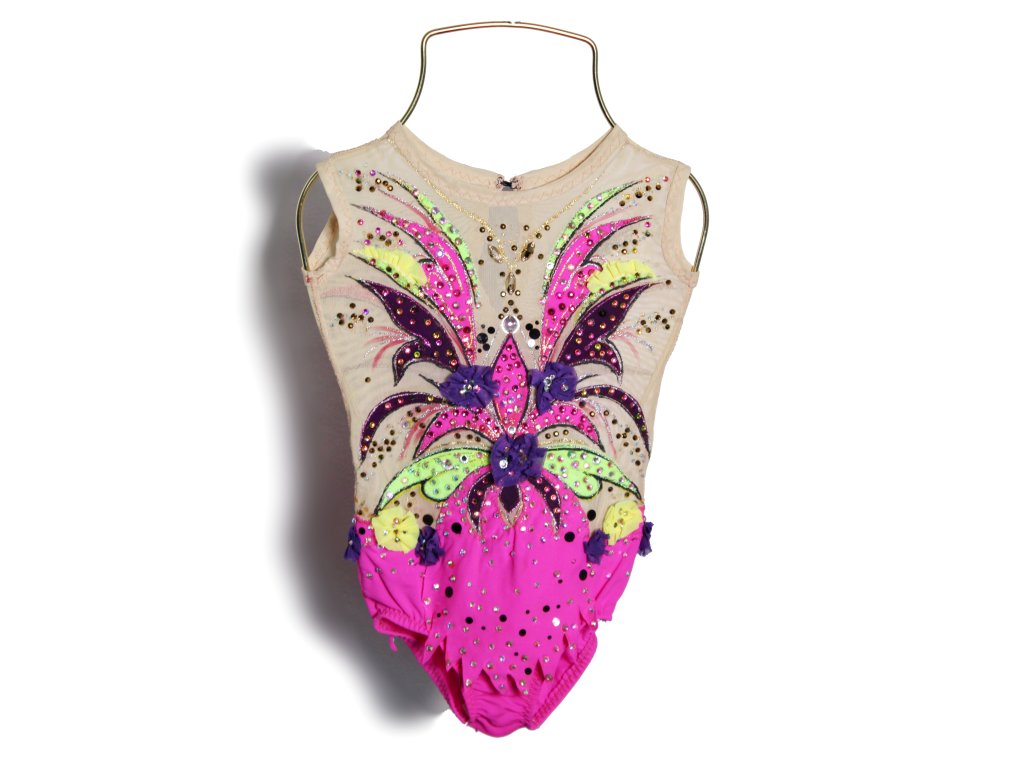Dětský soutěžní dres v v oblíbené růžové barvě, zdobený mnoha kamínky a roztomilými květinkami. Dres je TOP stavu, naprosto bez vady.