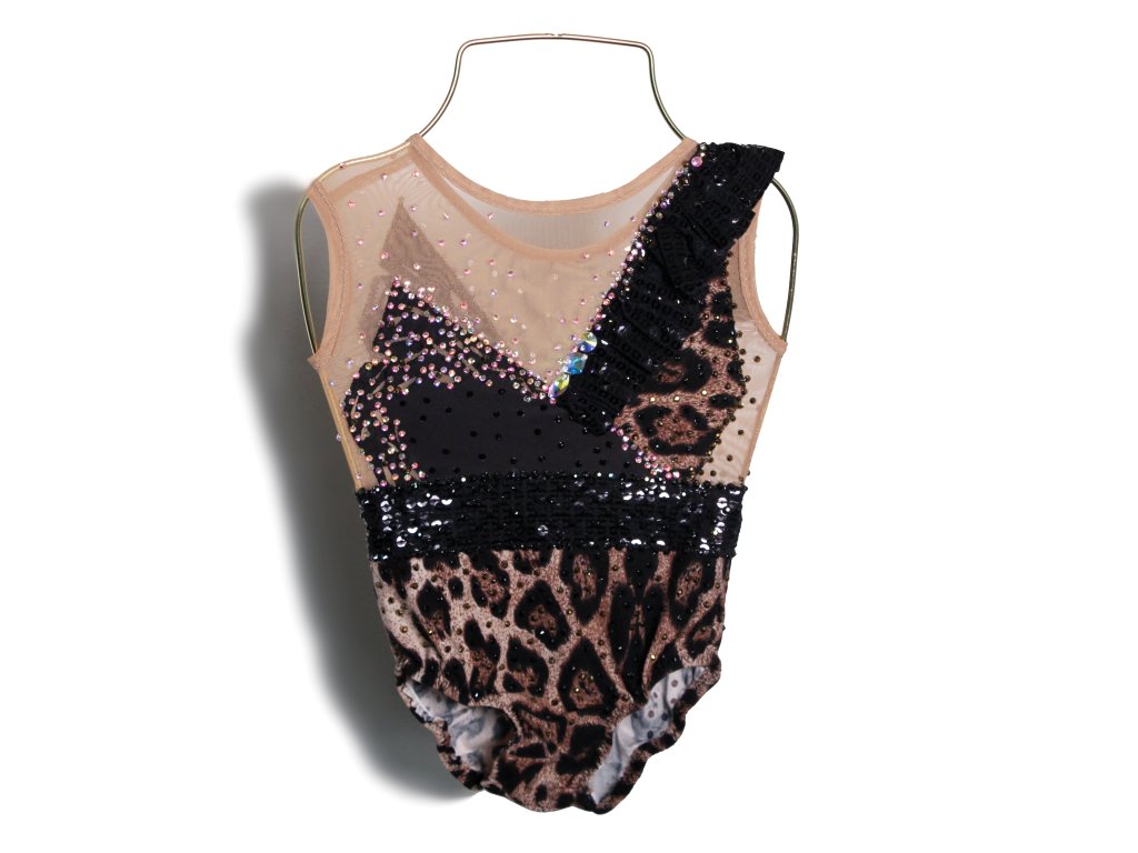 Dětský soutěžní dres v elegantním a neotřelém leopardím provedení, zdobený mnoha kamínky Swarovski. Dres je v podstatě nový, naprosto bez vady. Vhodný pro velikost cca 116.