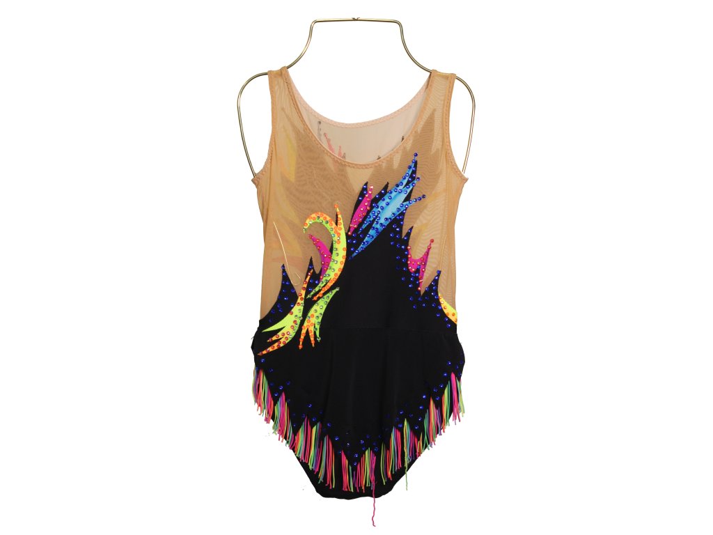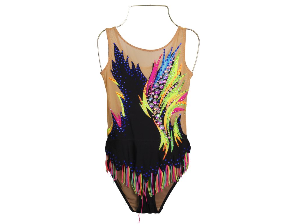 Dětský soutěžní dres TOP kvality. Bohatě zdobený kamínky různých barev se zajímavou třásňovou sukénkou. Vhodný pro velikost cca 134/140.