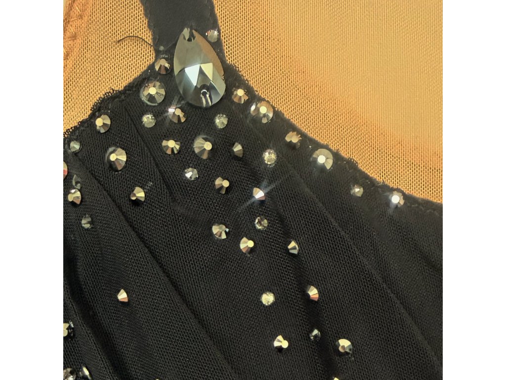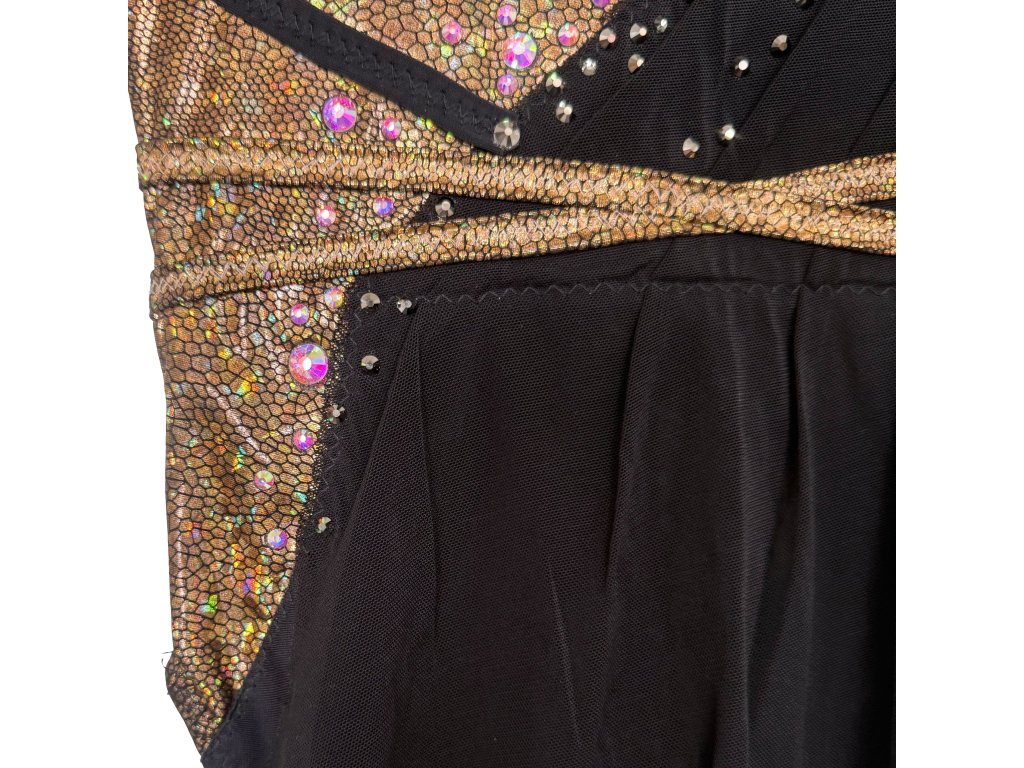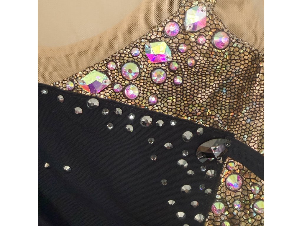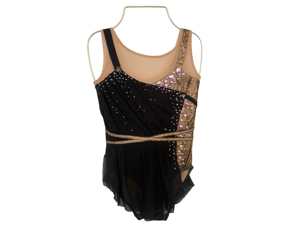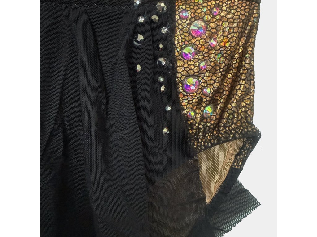 Dětský soutěžní dres TOP kvality. Zajímavě zdobený kamínky různých velikostí s moderním střihem a lehkou sukénkou sukénkou. Vhodný pro velikost cca 140.