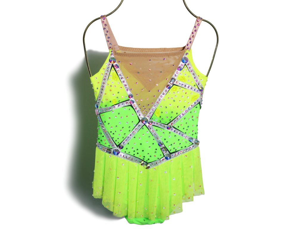 Výrazný gymnastický dres ve svítivě žluté barvě, ideální pro závodní gymnastiku. Pohodlný střih s elegantní sukénkou a ramínka, která se dají upravit zajišťují perfektní padnutí i volnost pohybu.