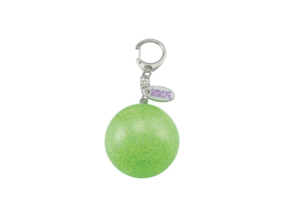 Stylový přívěsek ve tvaru gymnastického míče s holografickým třpytem a kovovým logem SASAKI. Skvělý doplněk na tašku, batoh nebo klíče!