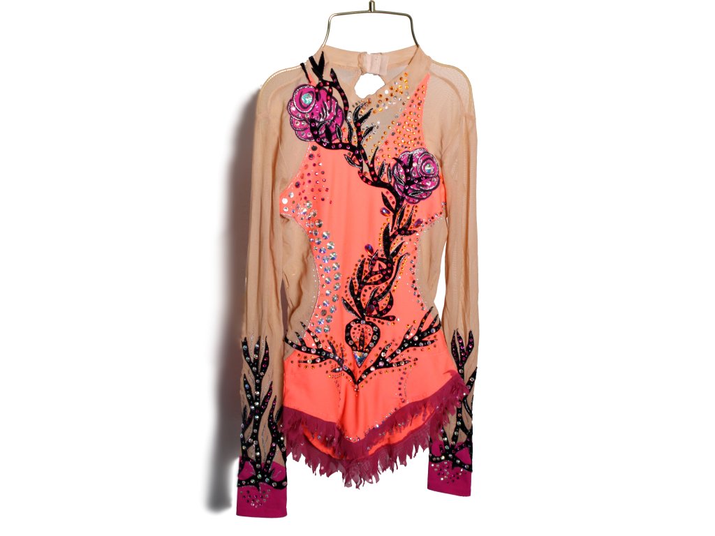 Krásný závodní dres, zdobený mnoha krystaly a krásnými květy s ručně malovaným třpytem.