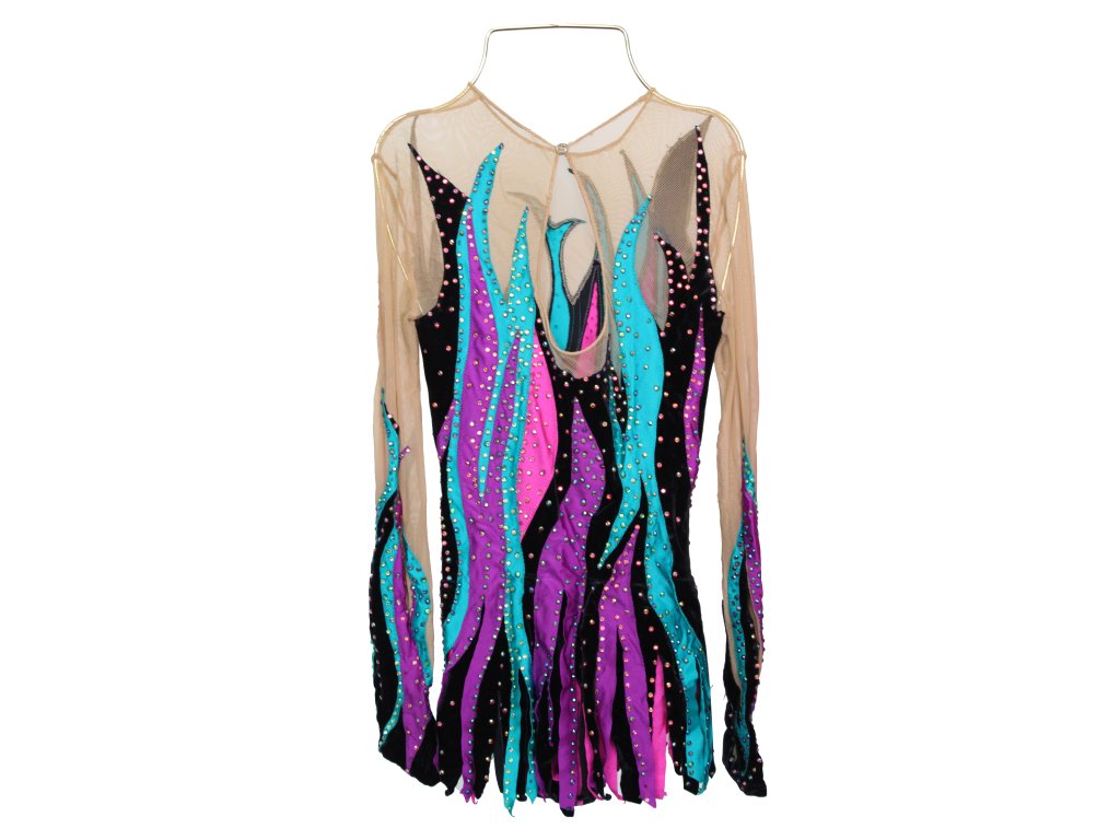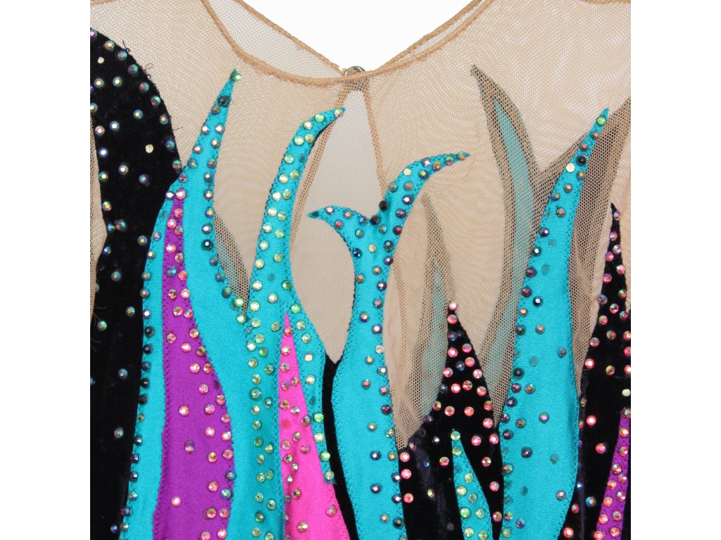 Elegantní soutěžní dres, zdobený mnoha třpytivými krystaly v mnoha barvách.
